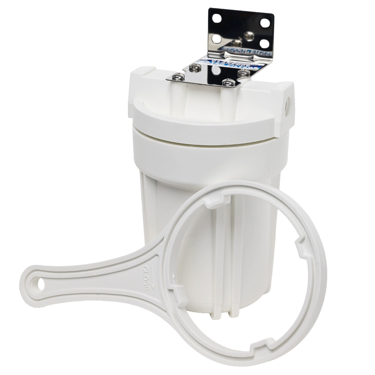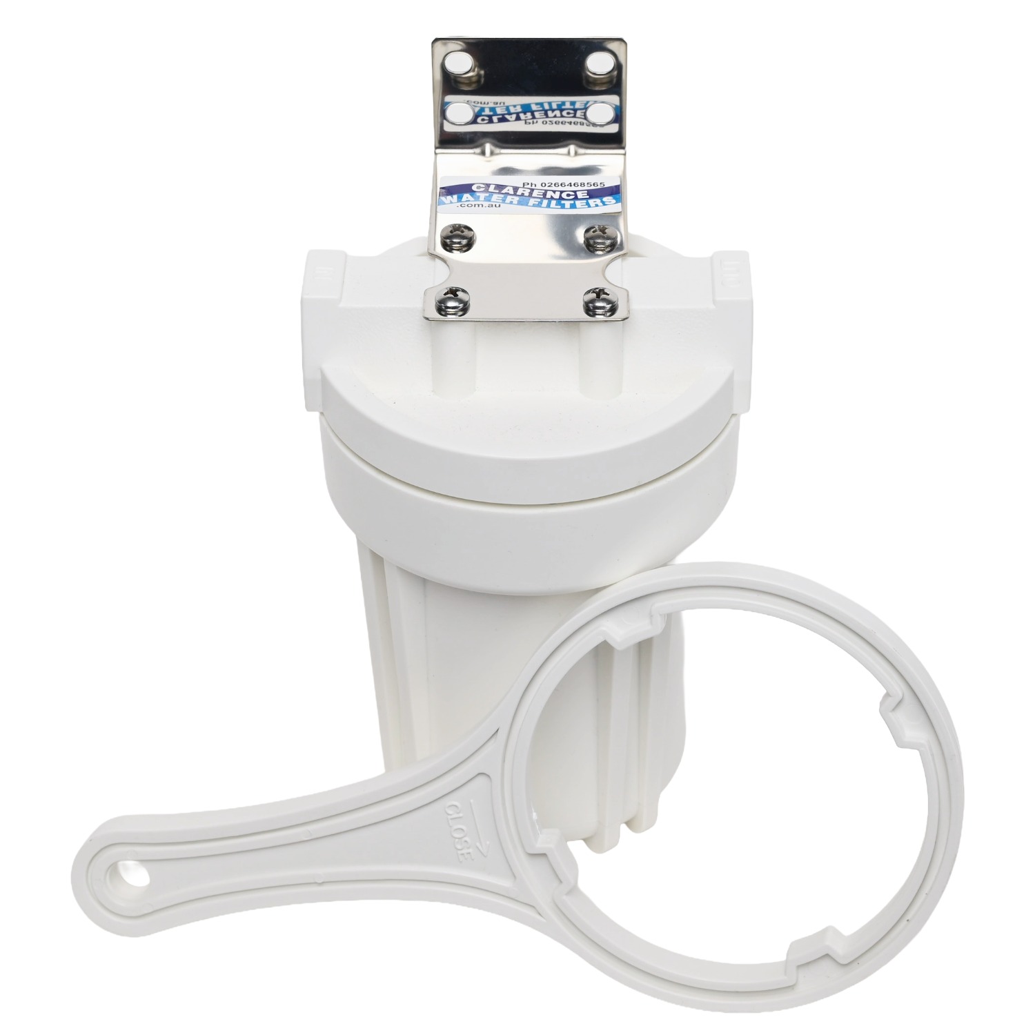 Stainless Steel Mounting Bracket with screws and Housing spanners for unscrewing the filter sump are available in the product options.