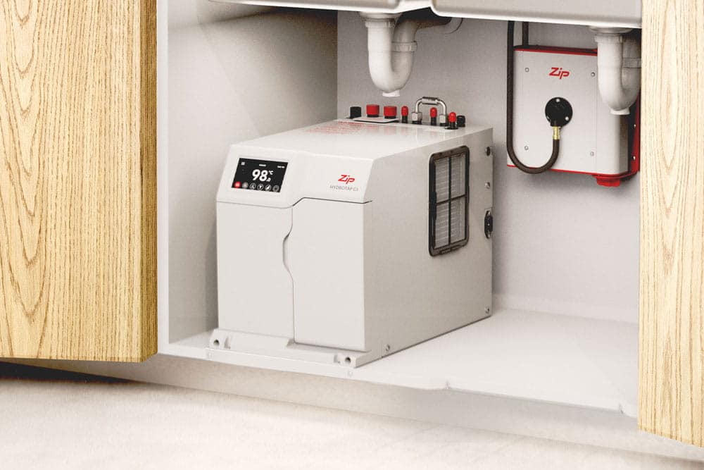 All Zip units can provide room temperature or chilled water. Some systems can also boil or carbonate the water (fantastic for sparkling water and the occasional cocktail).