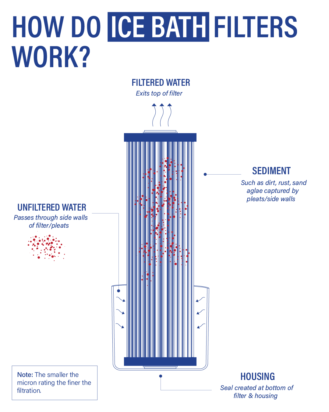 Enjoy a clear, clean and hygienic ice bath by removing particulates such as dirts, sand, skin and hair. Ensure your ice bath is performing at its best by regularly cleaning and replacing your filters.