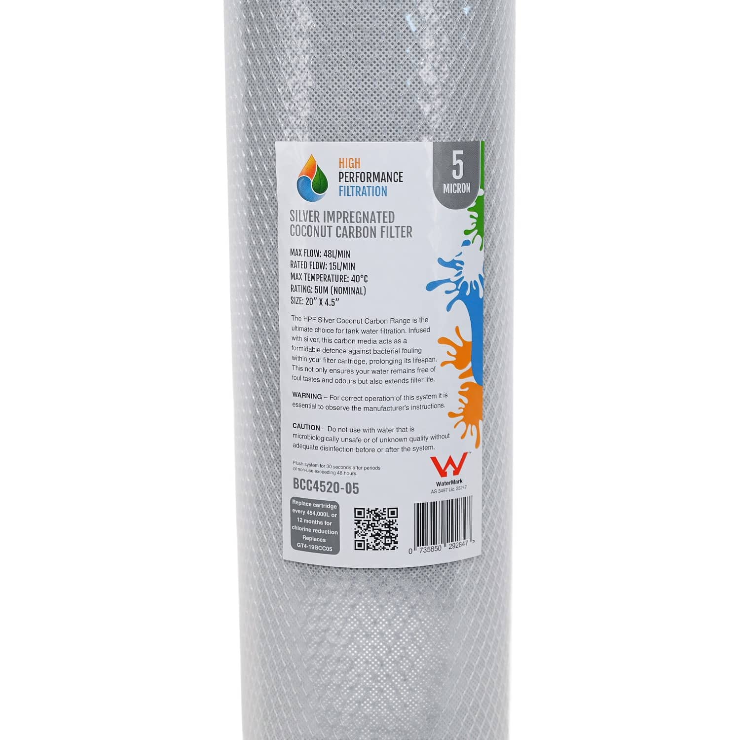 5 Micron Silver Impregnated Carbon Block, ideal for tank or untreated water supplies.