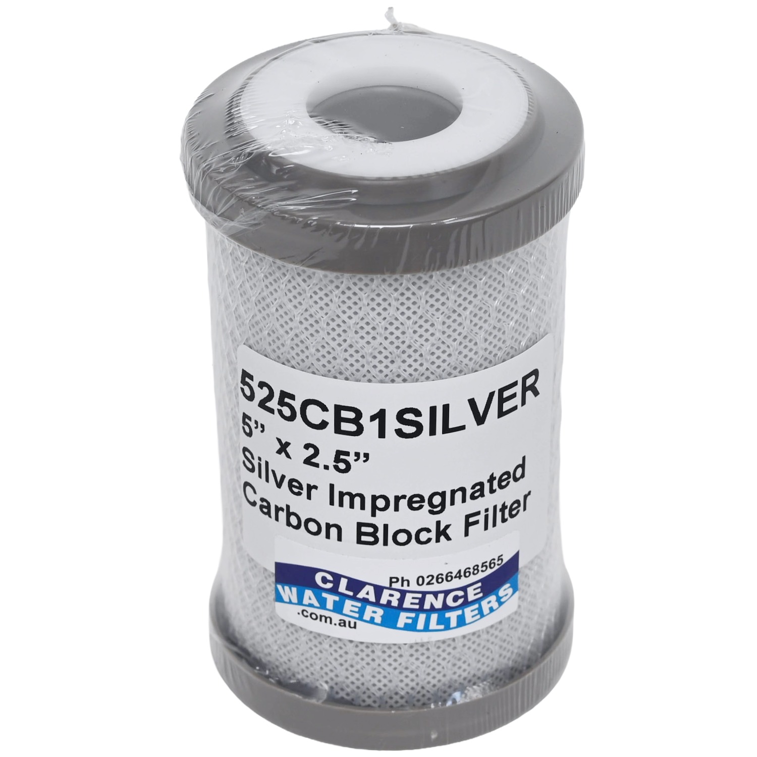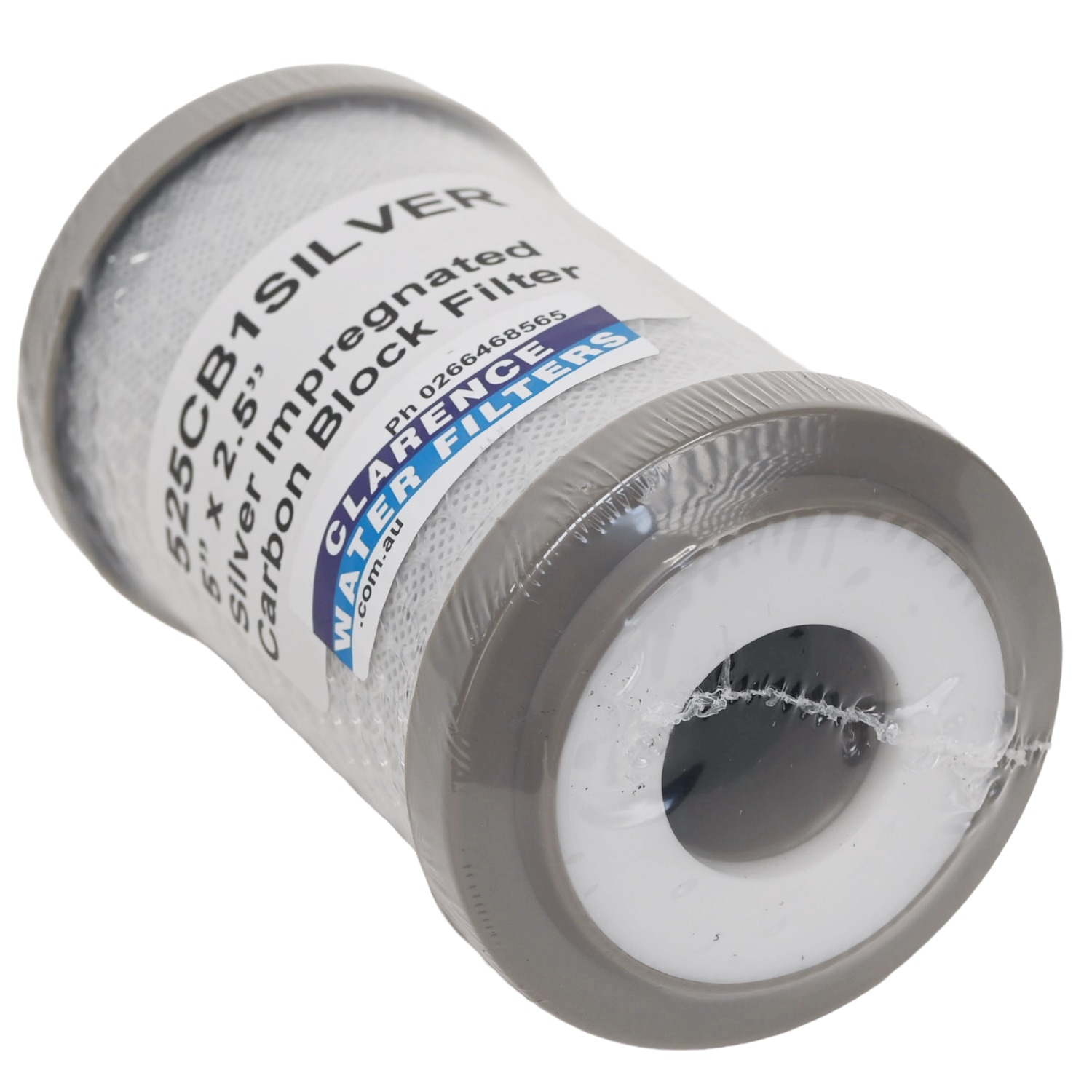 The 525CB1Silver is a 5″ x 2.5″ Carbon Block Water Filter. Designed to fit standard 5″ Water Filter Housings.