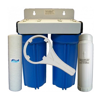 AP10-2-PS1-P100C Two stage sediment water filter and water softener system for hard water or water supplies high in Calcium. Softens water and stops Calcium scale built up & staining problems.