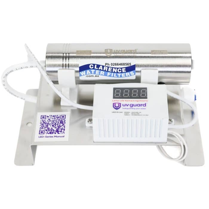 Powerful LED 12V and 240V Ultraviolet Water Sterilizer which destroys 99.99% of pathogens and bacteria. Ideal for caravans, RVs, 4WDs, and off grid properties.