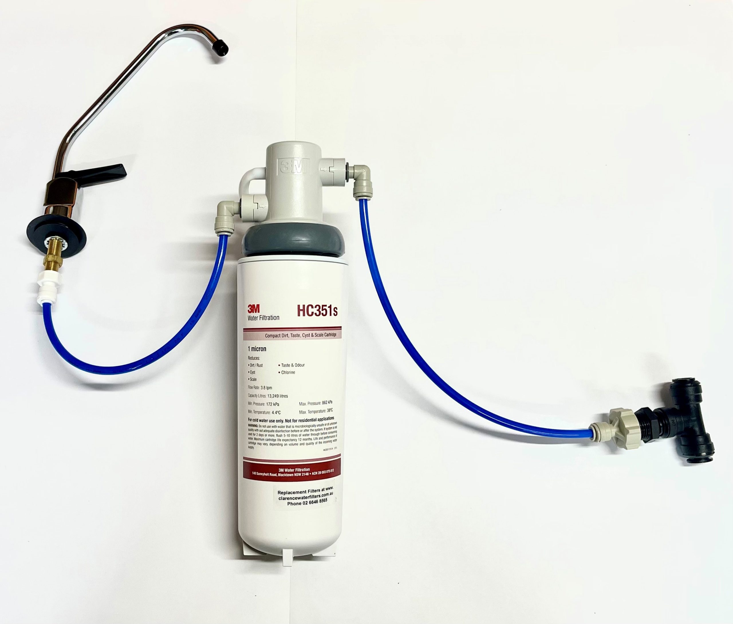 Instructions are included with the system to make installation a breeze. All you will need to do is cut into the 12 mm cold water line which feeds your existing tap, insert the tee piece, then install the filter. Find a great location for your tap then run 1/4″ tubing into the outlet of the filter.