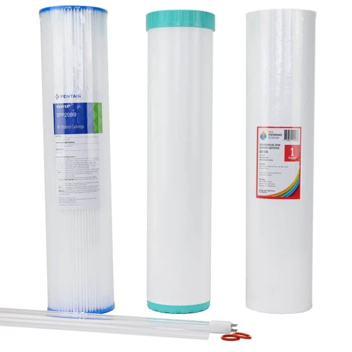 Generic replacement filters, lamp, sleeve and o-ring suitable for use with the Puretec Hybrid G13. Filter Size 20″ X 4.5″