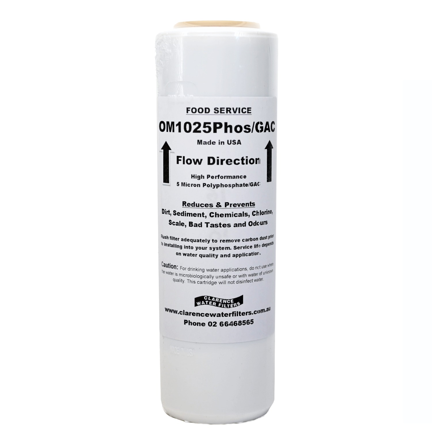 The OM1025Phos/GAC is an American made water filter which reduces sediment, bad taste/odour, chemicals and scale build-up. Ideal for protecting coffee machines and other water consuming appliances.