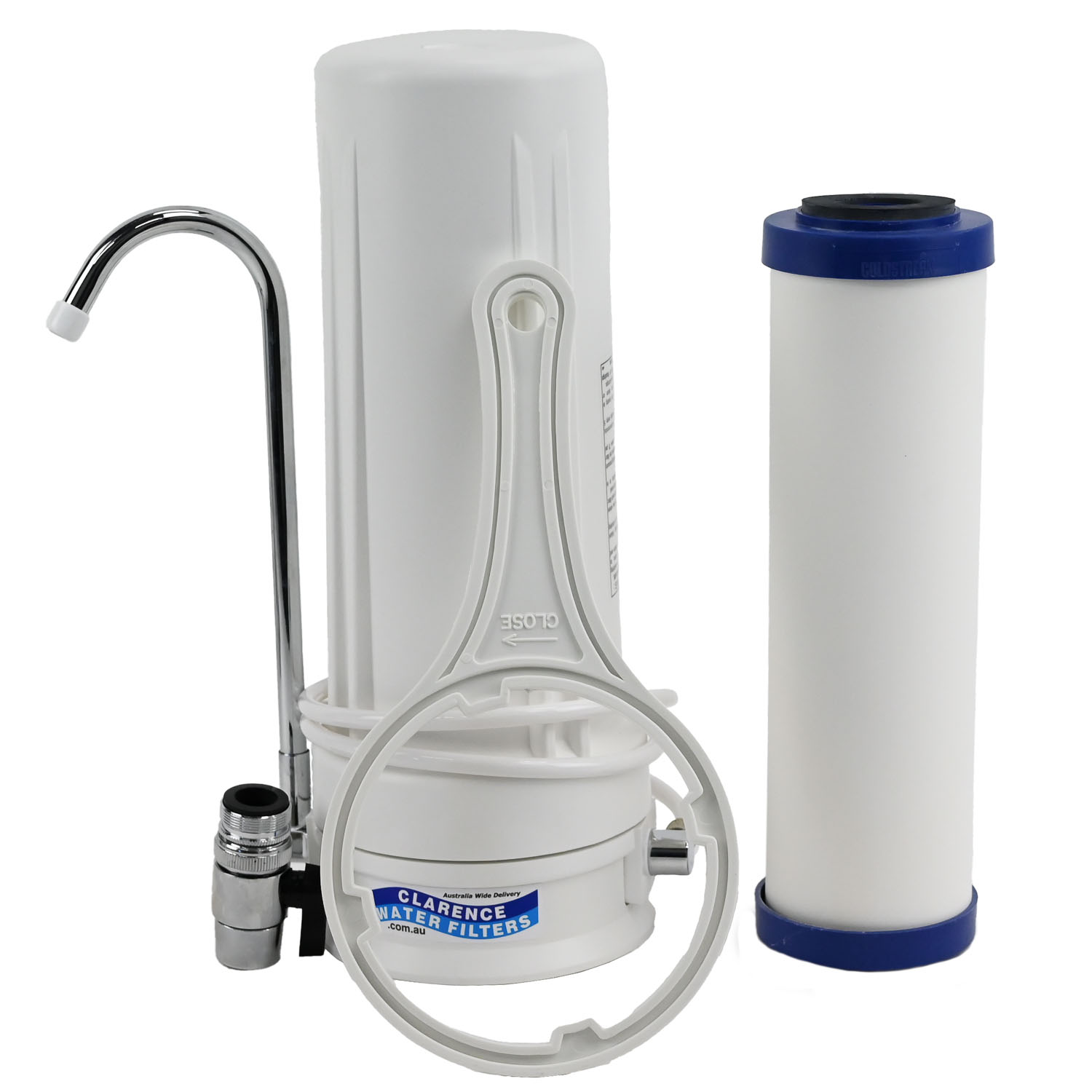 10 inch bench top water filter system for tank water featuring an Coldstream Sentry ceramic water filter