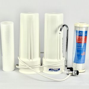 Twin bench top water filter system complete with diverter valve for easy installation. The perfect option for anyone looking for a simple to install water filtration system.