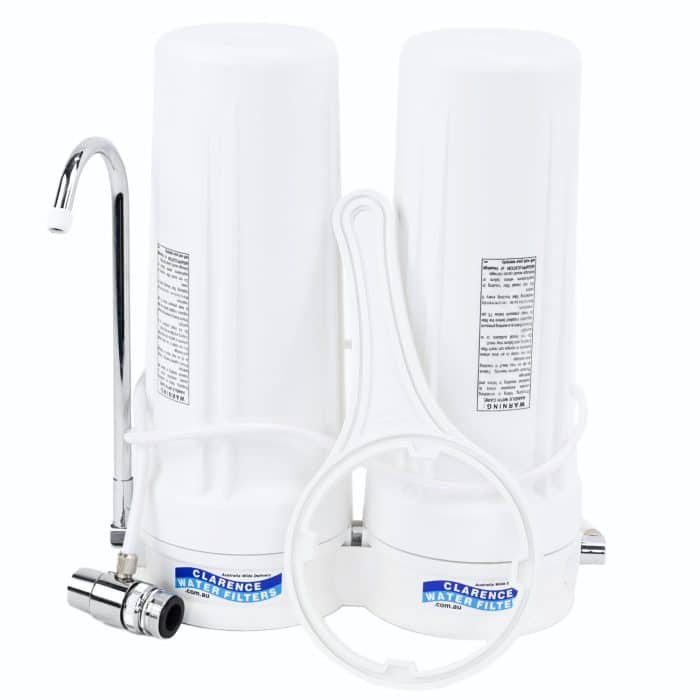 Twin bench top water filter system complete with diverter valve for easy installation. The perfect option for anyone looking for a simple to install water filtration system.