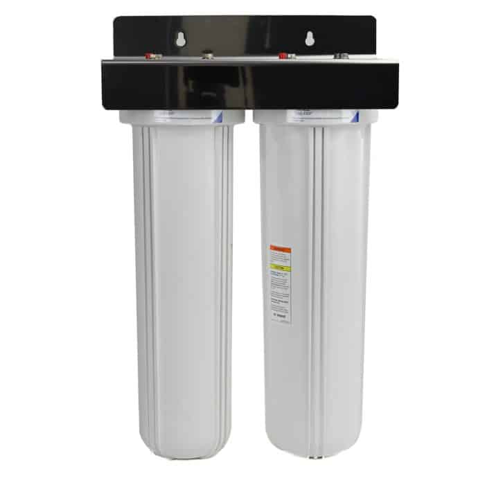 Twin Pentair Big White Large 20″ x 4.5″ filter housing with 1″ or 1.5″ ports.